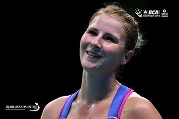 Gregoria Mariska (Indonesia) menggapai pengembalian