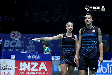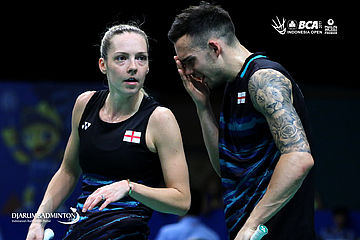 Chris Adcock/Gabrielle Adcock (Inggris) melakukan protes