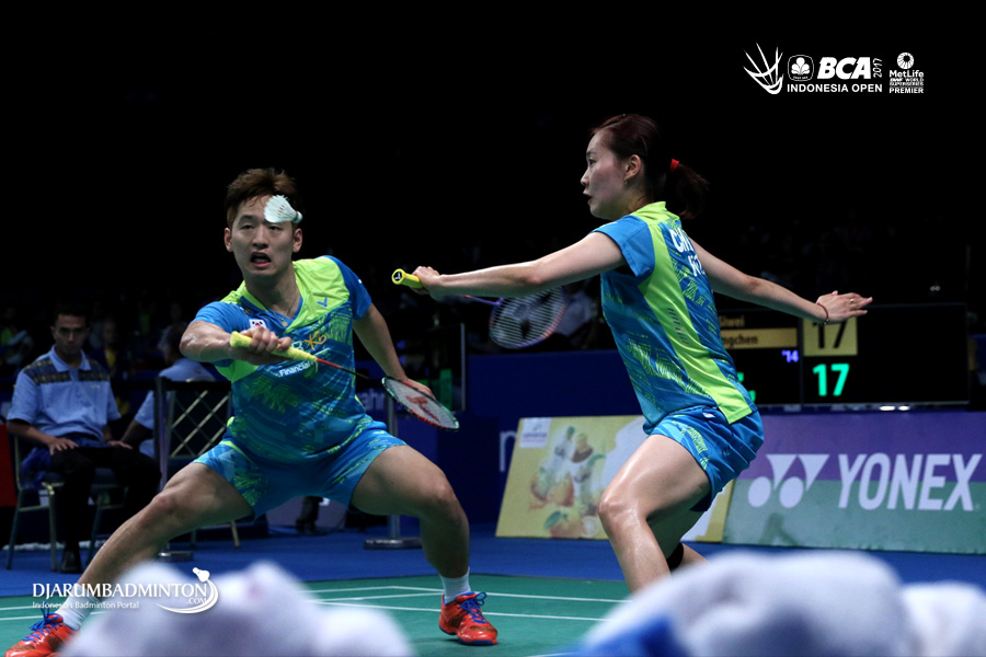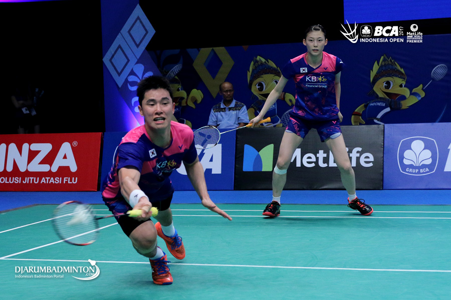 Solgyu Choi/Chae Yoo Jung (Korea) bersiap menghadang serangan