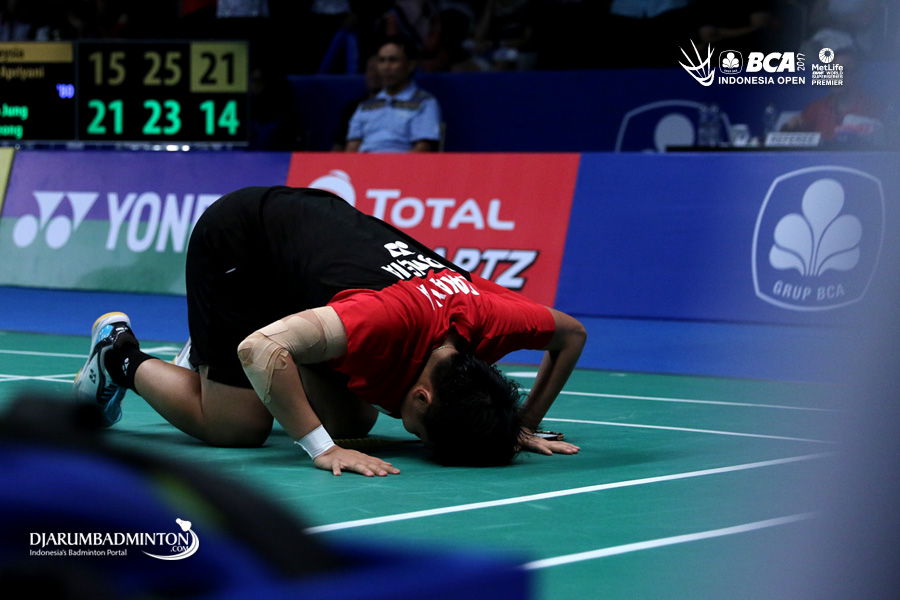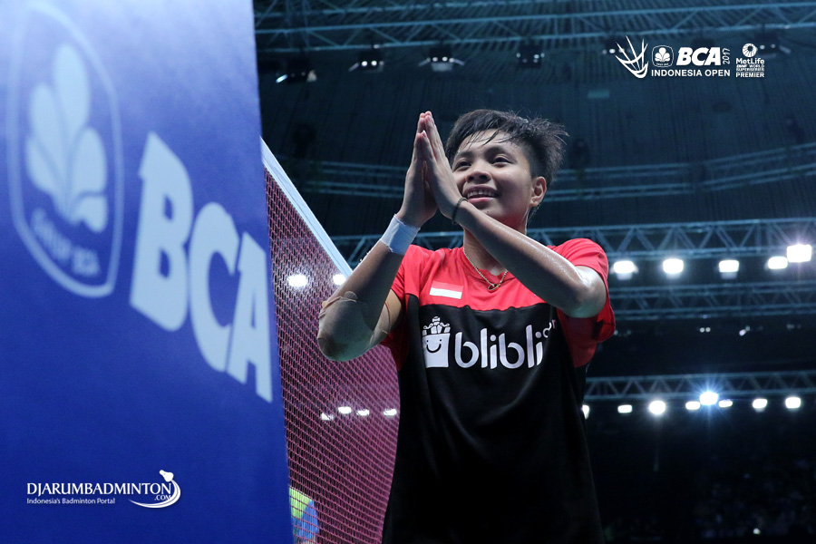 Selebrasi kemenangan Apriyani Rahayu (Indonesia)