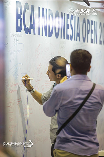 Pengunjung menuliskan dukungannya di Wall of Fame