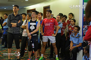 Suasana di player lounge saat pertandingan Hendra Setiawan/Tan Boon Heong melawan Hiroyuki Endo/Yuta Watanabe