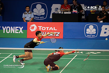 Aksi Greysia Polii dan Apriani Rahayu (Indonesia) saat bertanding