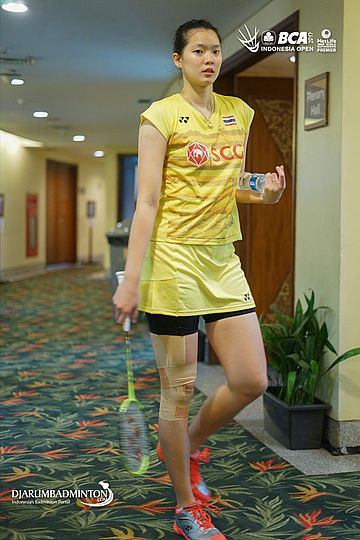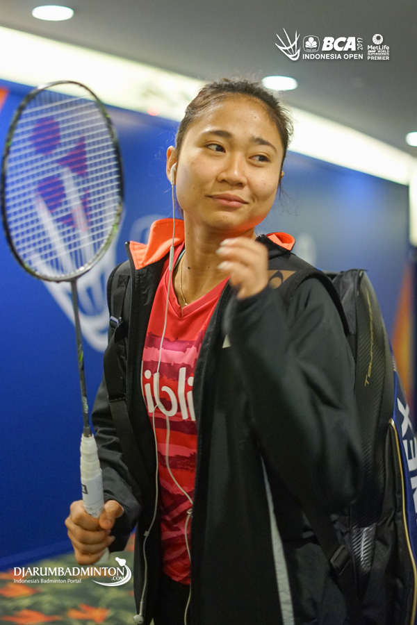 Puttita Supajirakul (Thailand) bersiap memasuki lapangan pertandingan