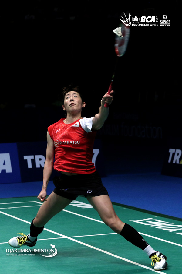 Sayaka Sato (Jepang) bersiap menghadang serangan