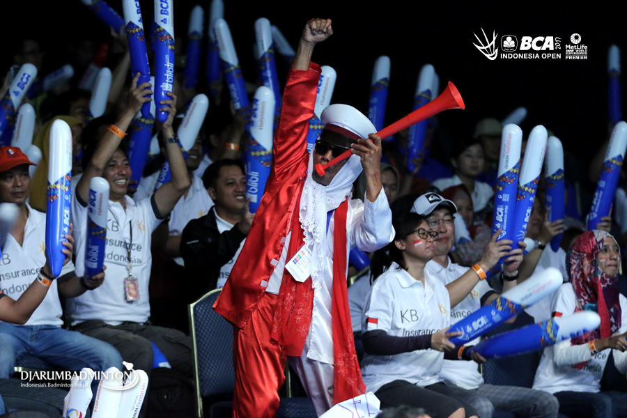 Salah satu suporter terlihat bersemangat mendukung atlet Indonesia
