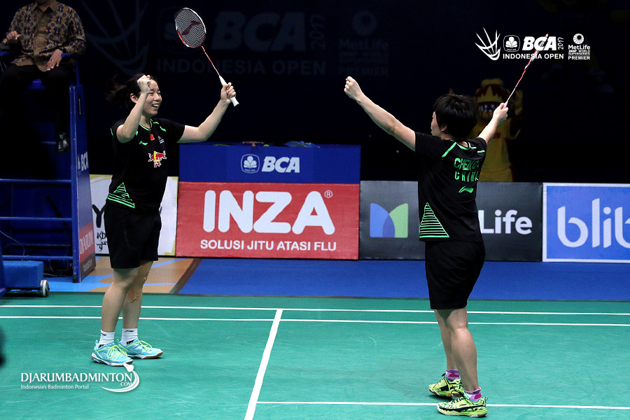 Chen Qingchen/Jia Yifan (Tiongkok) saling berkoordinasi di lapangan
