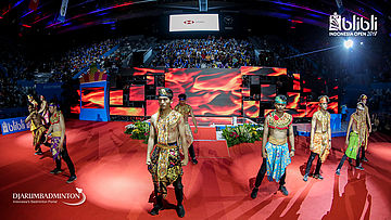 Penampilan dancer ikut memeriahkan gelaran Final BLIBLI Indonesia Open 2018
