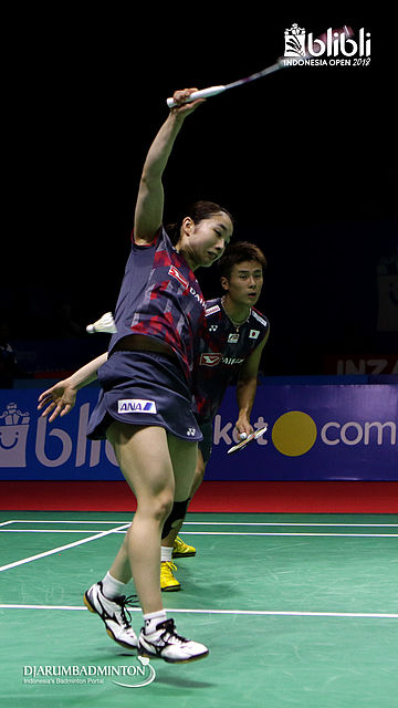 Yugo Kobayashi/Misaki Matsutomo (JPN) gagal menghadang serangan.