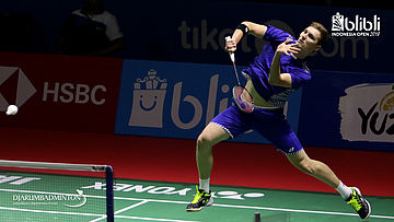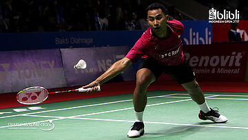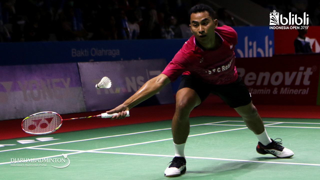 Tommy Sugiarto (INA) bersiap menghadang serangan.