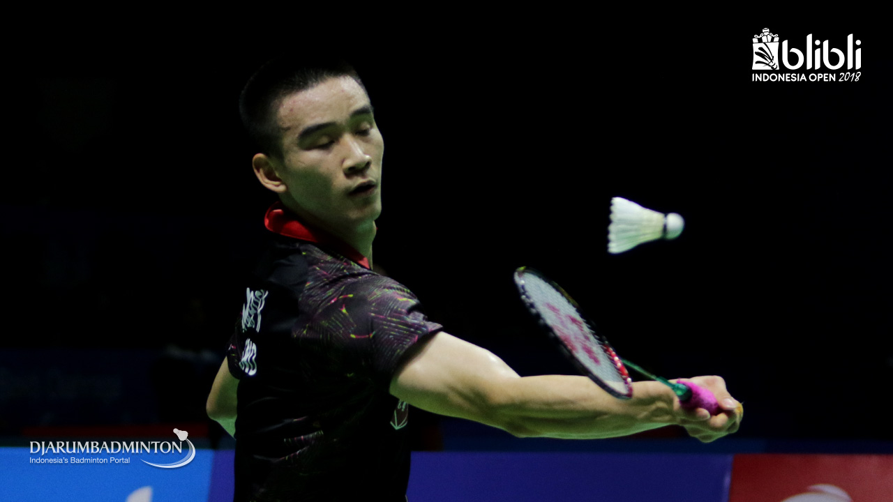 Kantaphon Wangcharoen (THA) mengembalikan shuttlecock.