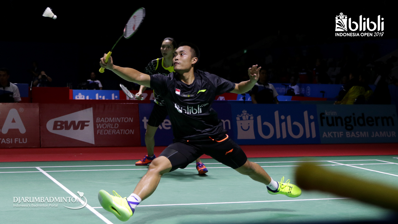 Ricky Karandasuwardi/Debby Susanto (INA) bersiap menghadang pengembalian.