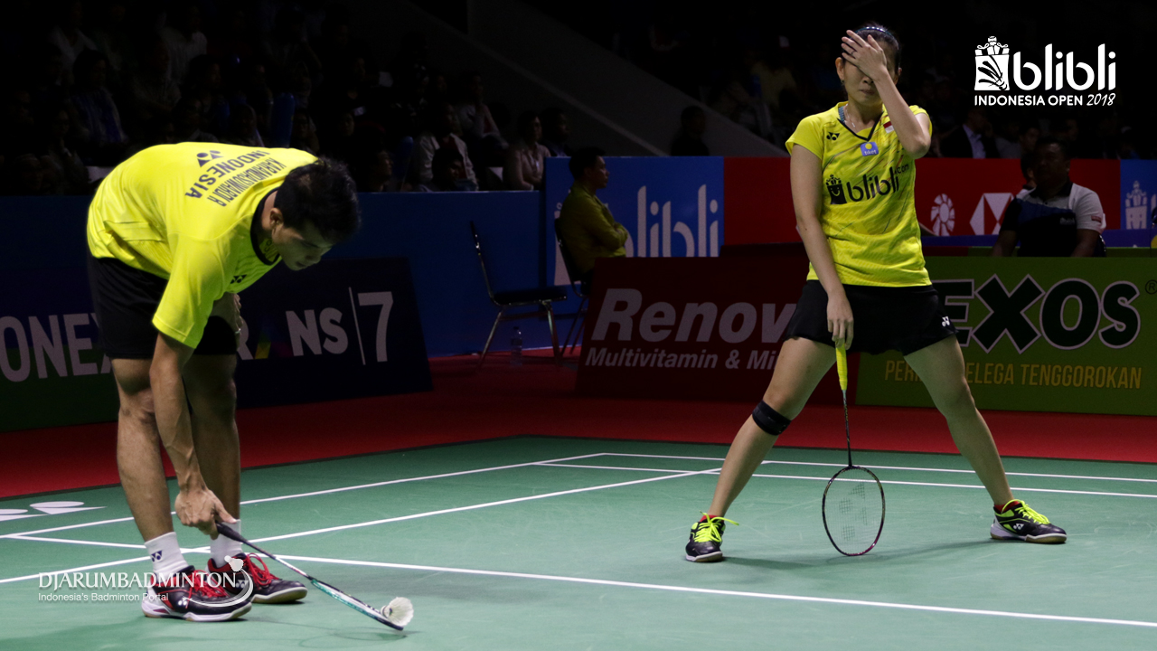 Ekspresi kekecewaan Ricky Karandasuwardi/Debby Susanto (INA).