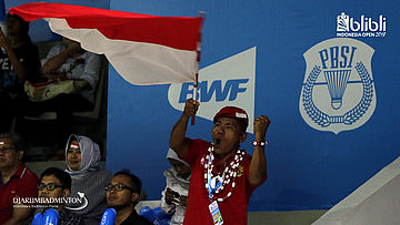 Ekspresi salah satu penggemar fanatik bulutangkis Indonesia.
