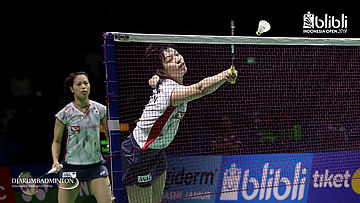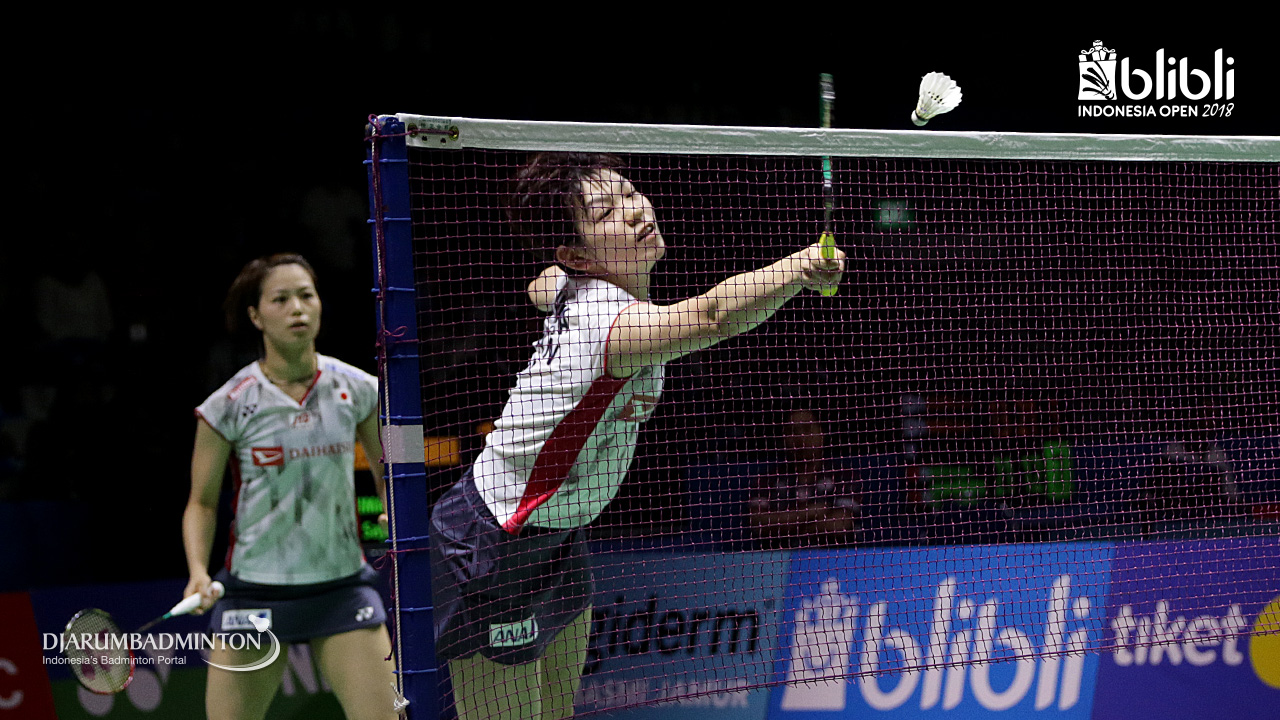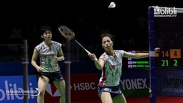 Yuki Fukushima/Sayaka Hirota (JPN) menyambar pengembalian.