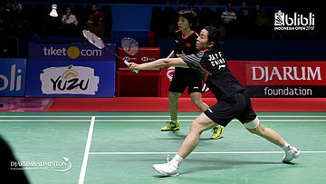Marcus Fernaldi Gideon/Kevin Sanjaya Sukamuljo (INA) menyambut pengembalian