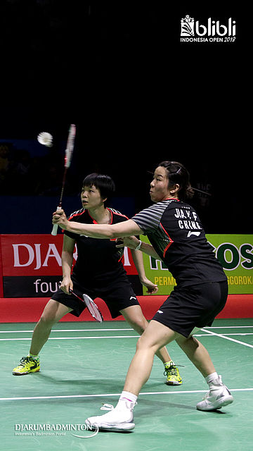 Chen Qingchen/Jia Yifan (CHN) mengembalikan shuttlecock