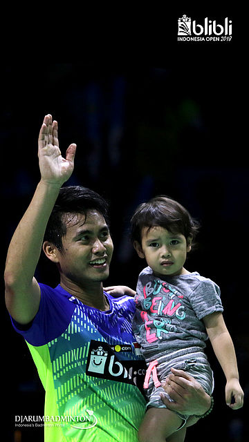 Tontowi Ahmad (INA) bersama putra pertamanya
