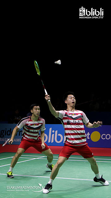 Marcus Fernaldi Gideon/Kevin Sanjaya Sukamuljo (INA) menyambut pengembalian