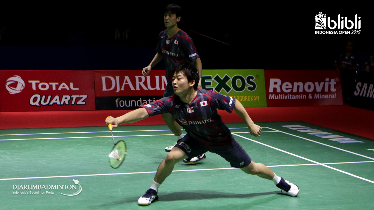 Takuto Inoue/Yuki Kaneko (JPN) menyambut pengembalian