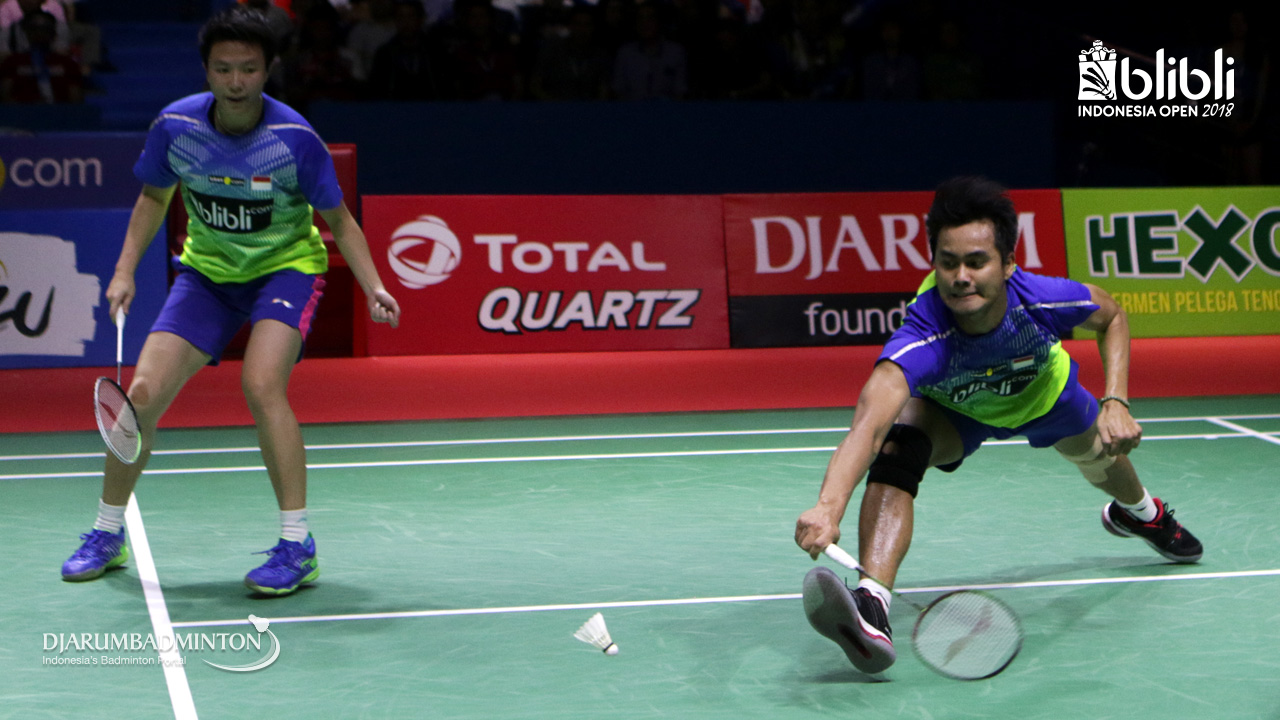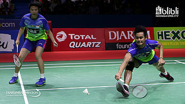 Tontowi Ahmad/Liliyana Natsir (INA) berusaha menggapai pengembalian