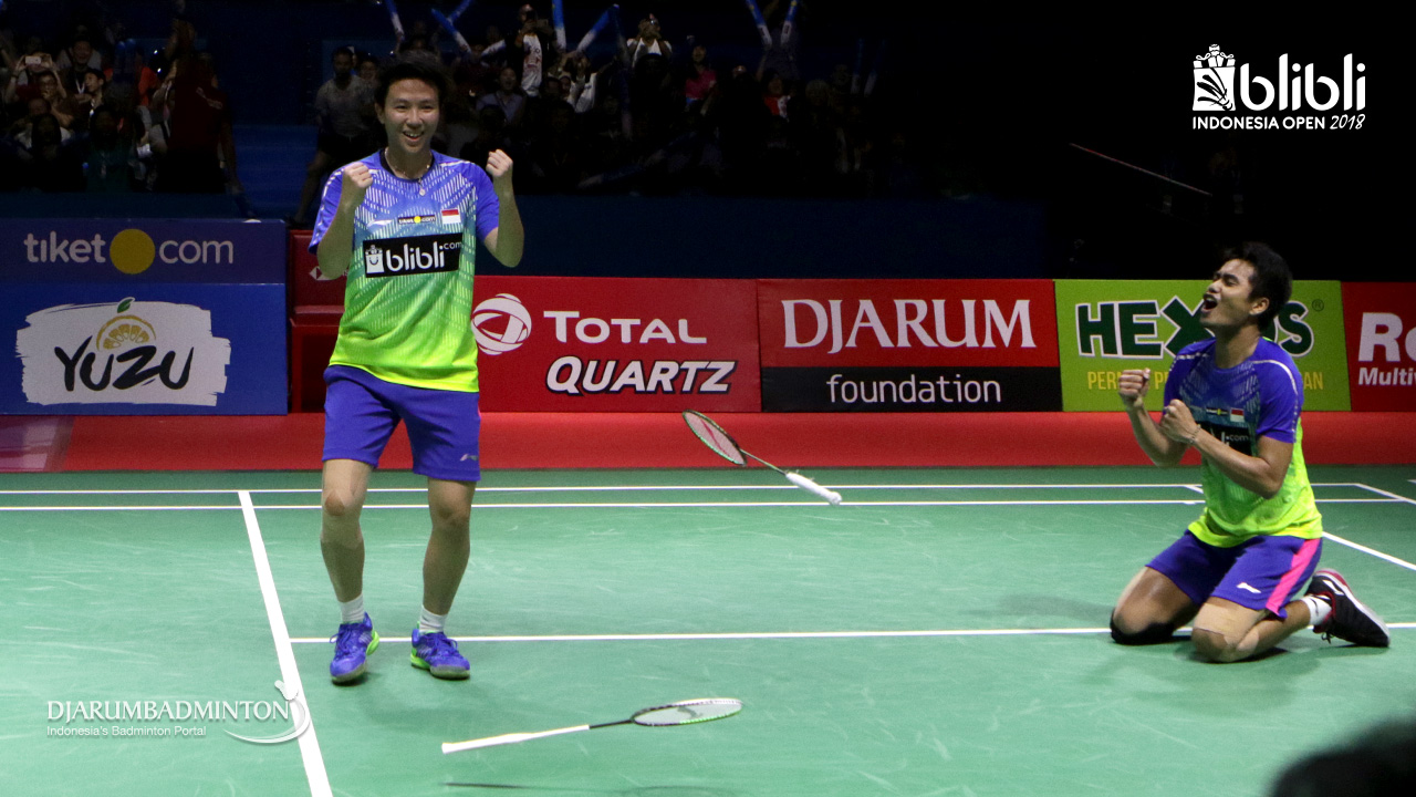 Selebrasi kemenangan Tontowi Ahmad/Liliyana Natsir (INA)