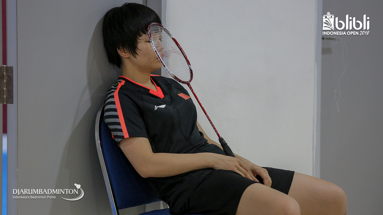 Ekspresi JIA Yifan (Tiongkok) saat menunggu giliran bertanding