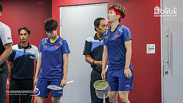 DU Yue dan LI Yinhui (Tiongkok) bersiap di meeting point