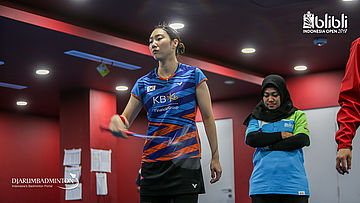 SUNG Ji Hyun (Korea) melakukan pemanasan