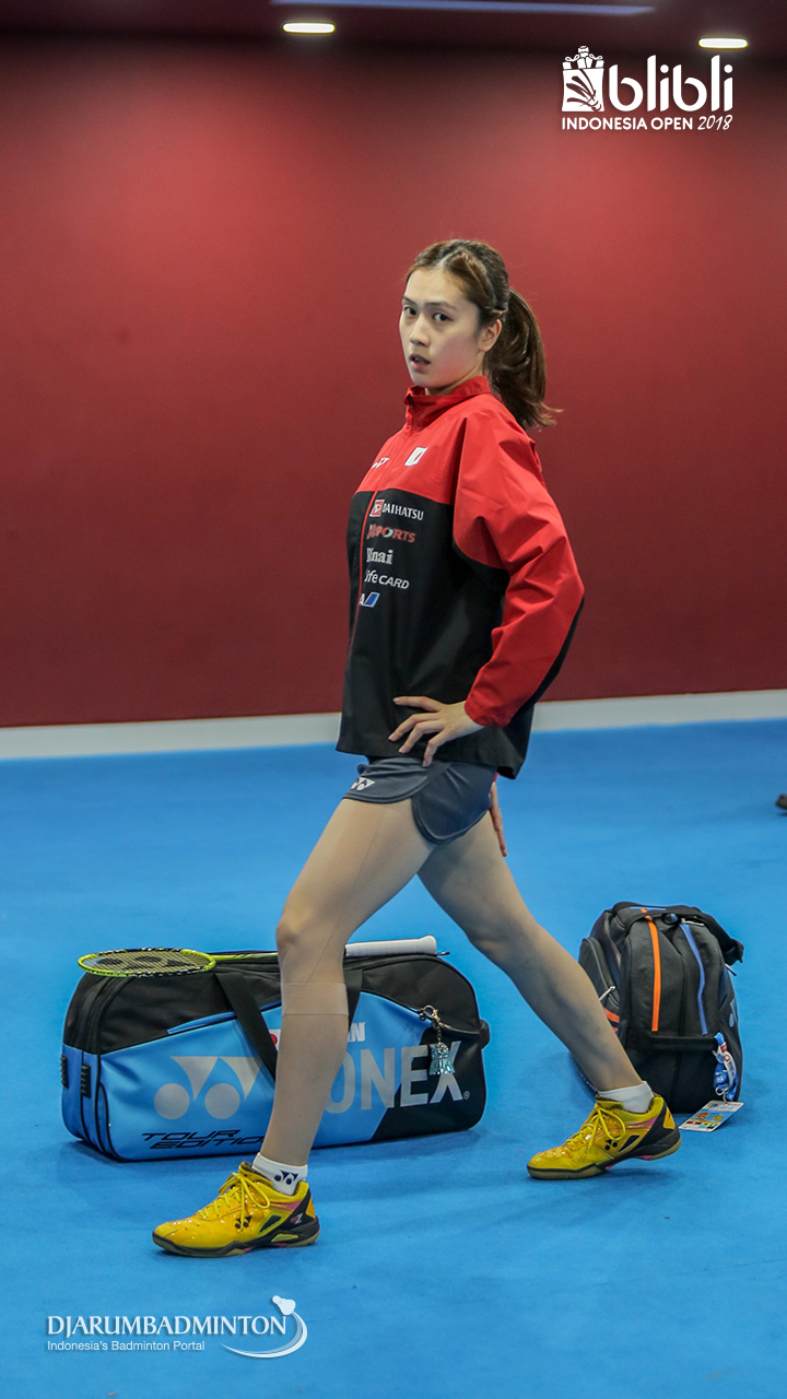 Aya OHORI (Jepang) melakukan peregangan sebelum bertanding