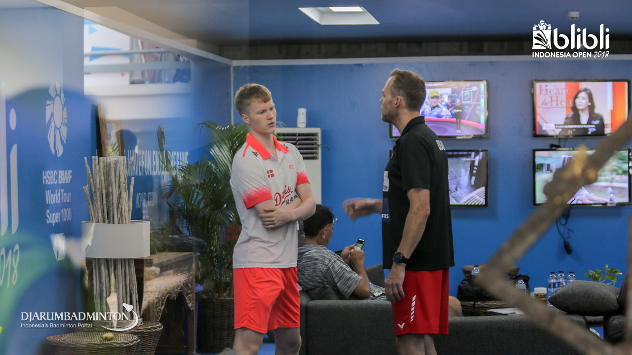 Anders ANTONSEN (Denmark) mendapat pengarahan pelatih
