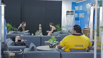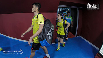 Evgeniya Kosetskaya (Russia) dan CHEN Yufei (Tiongkok) bersiap memasuki lapangan pertandingan