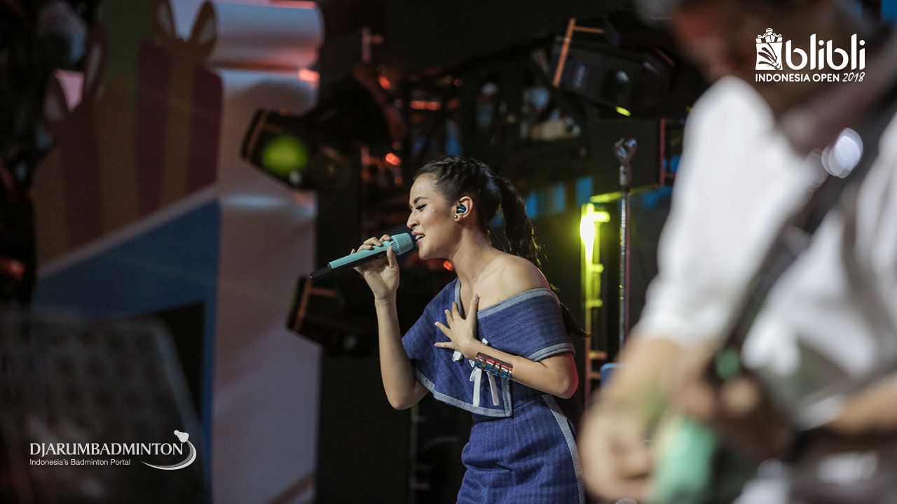 Raisa ikut memeriahkan gelaran BLIBLI Indonesia Open 2018