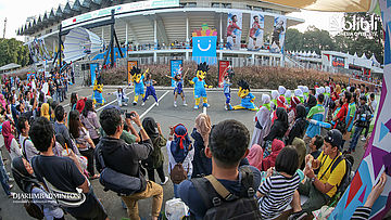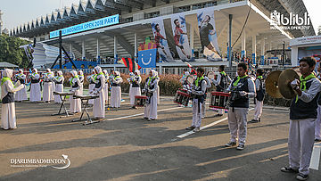 Hiburan oleh marching band di luar arena BLIBLI Indonesia Open 2018
