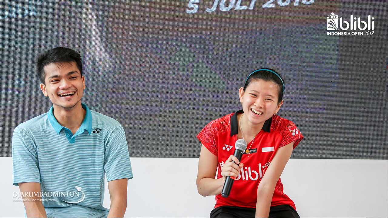 Ekspresi Ricky KARANDASUWARDI dan Debby SUSANTO (Indonesia) saat mendapat pertanyaan dari penggemar