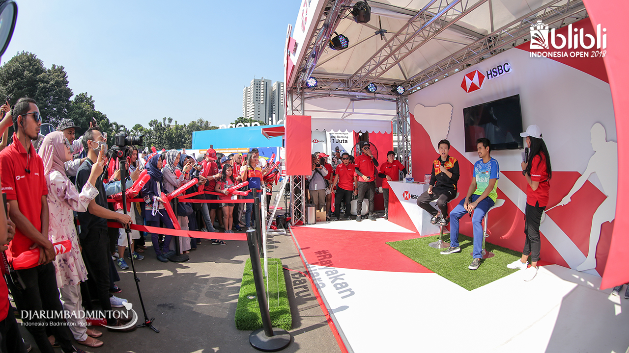 Suasana meet and greet Tontowi AHMAD dan Liliyana NATSIR (Indonesia) di booth HSBC