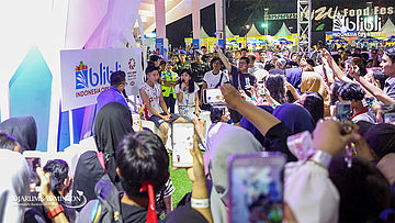 Suasana saat meet and greet Fajar ALFIAN dan Muhammad Rian ARDIANTO (Indonesia) di booth BLIBLI