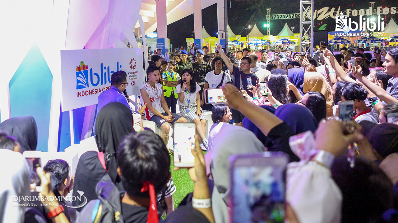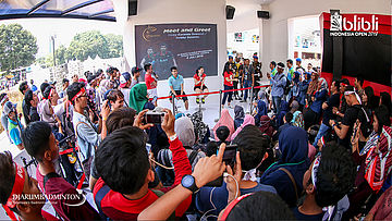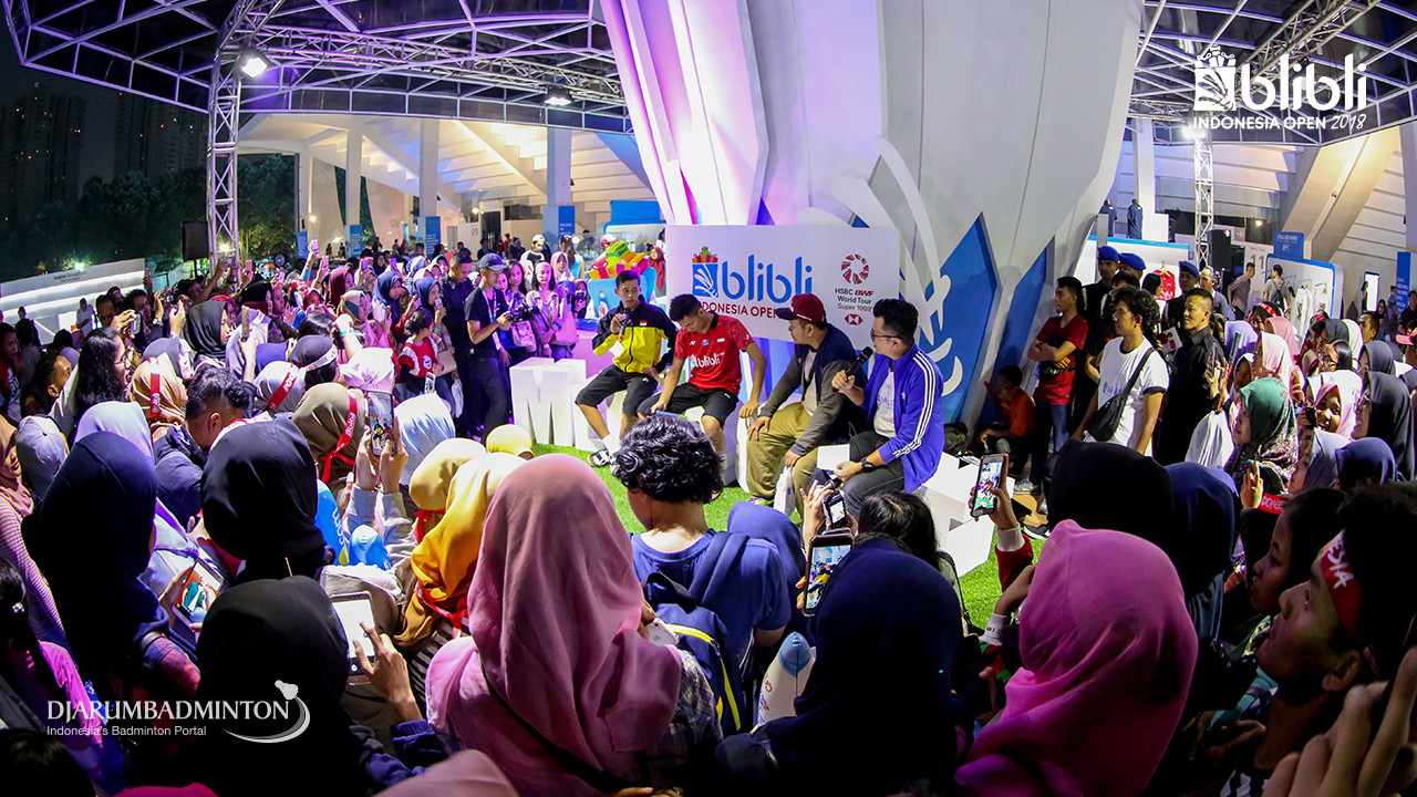 Suasana saat meet and greet Kento MOMOTA (Jepang) di booth BLIBLI