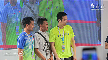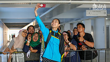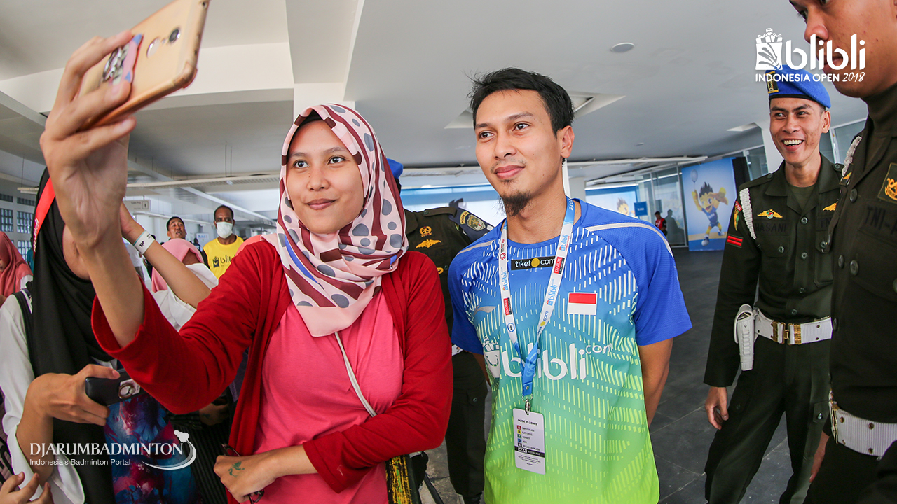 Kento MOMOTA (Jepang) berfoto bersama pengunjung