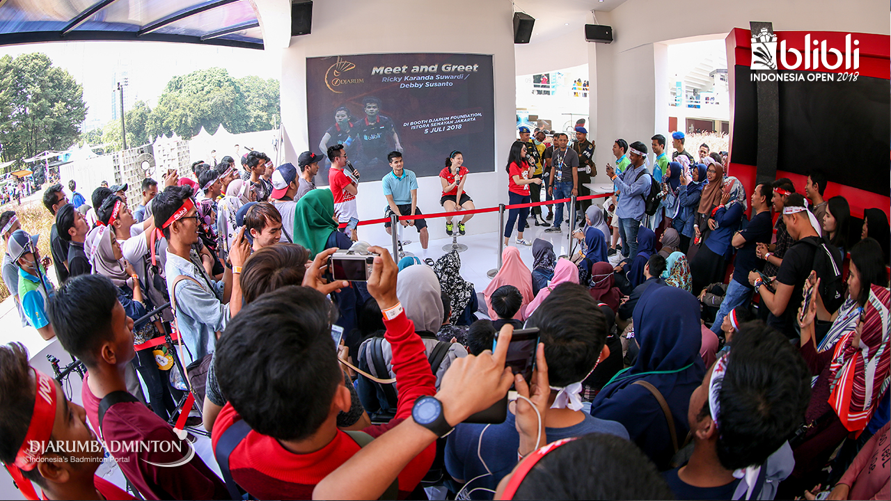 Suasana meet and greet Ricky KARANDASUWARDI dan Debby SUSANTO (Indonesia) di booth Djarum