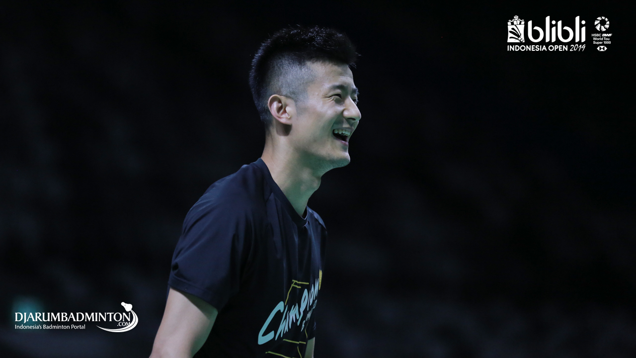 CHEN Long (China) saat melakukan sesi latihan di Istora senayan