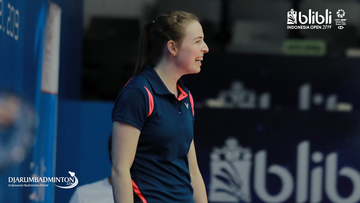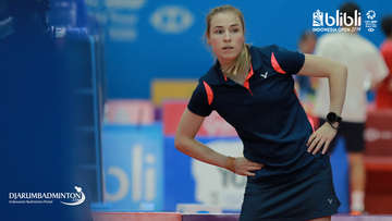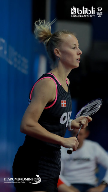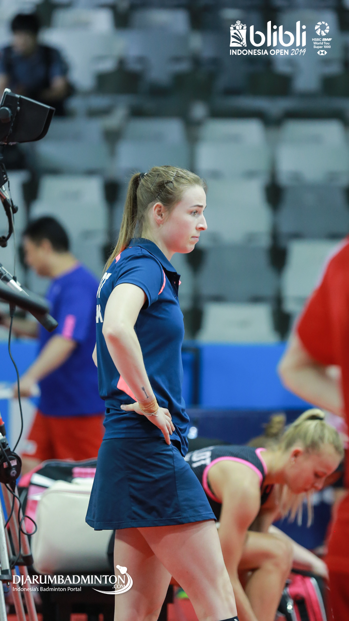 Mia BLICHFELDT (Denmark) sedang melakukan pemanasan