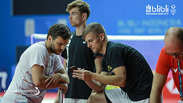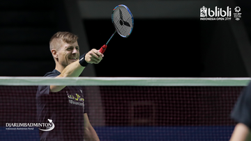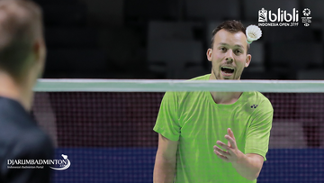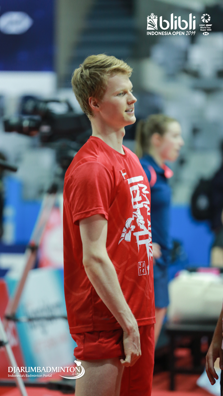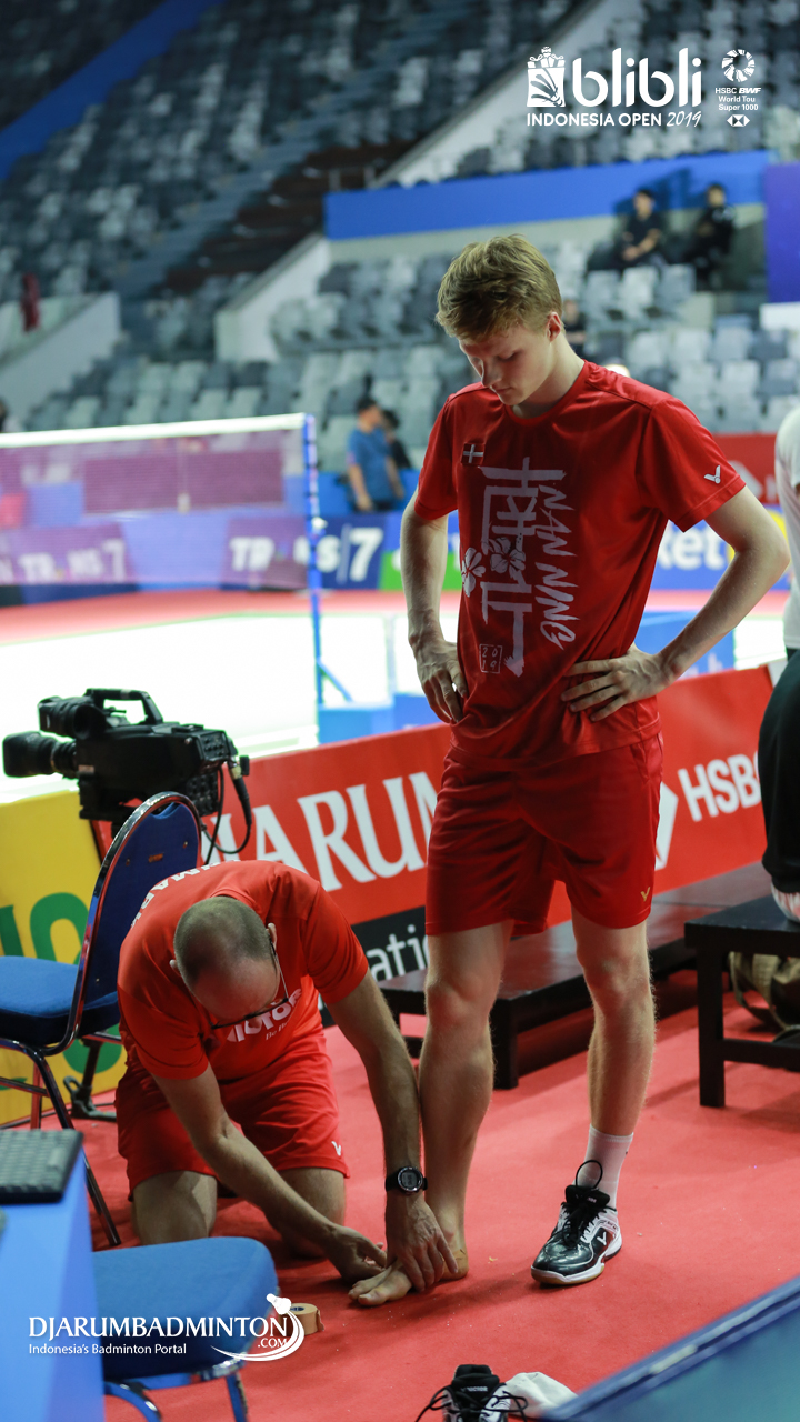 Anders ANTONSEN (Denmark) sedang ditangani tim medis