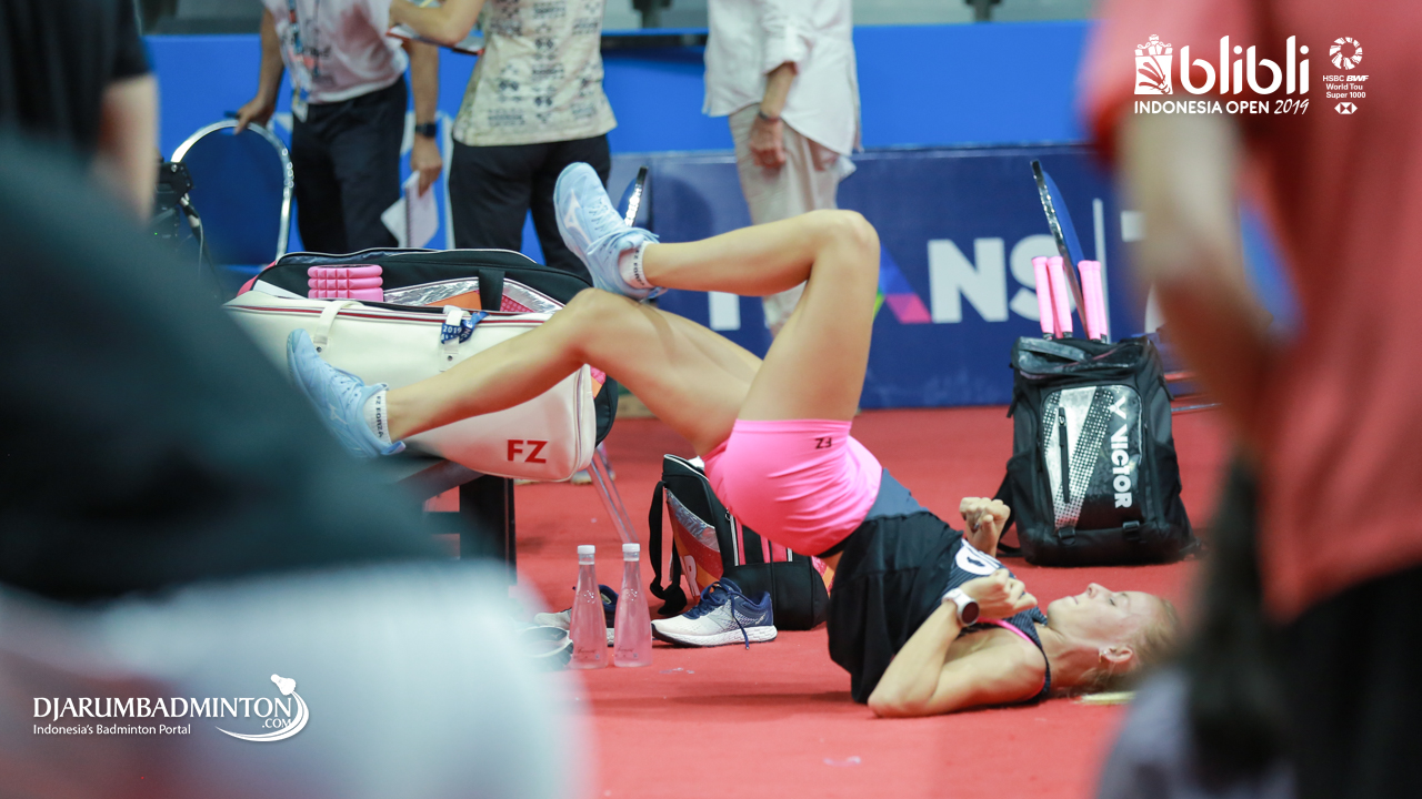 Mia BLICHFELDT (Denmark) saat melakukan peregangan
