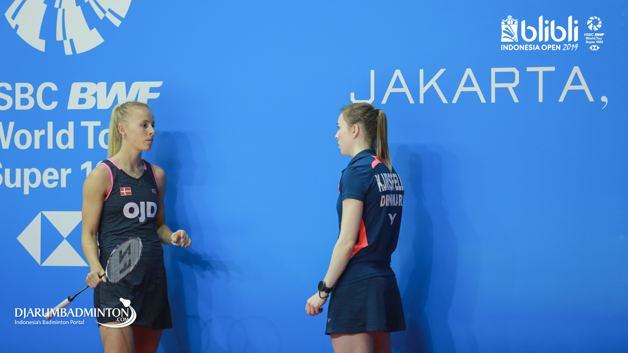 Mia BLICHFELDT/Line Højmark KJAERSFELDT (Denmark) saat berada di sesi latihan