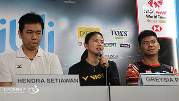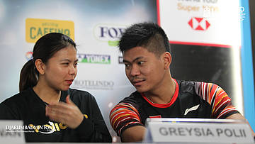 Greysia Polli dan Praven Jordan saat Press Conference Blibli Indonesia 2019