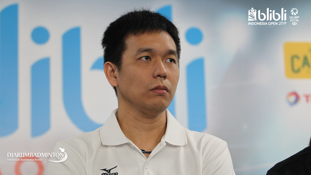 Ekpresi Hendra Setiawan saat Press Conference Blibli Indonesia 2019