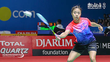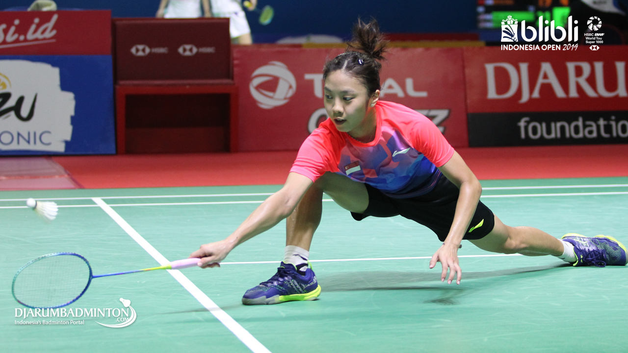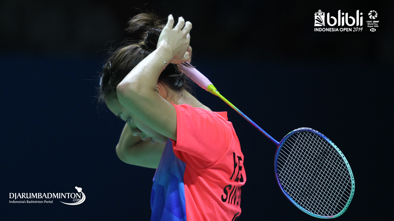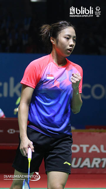YEO Jia Min (Singapore) menyambut shuttlecock