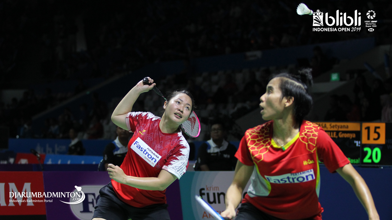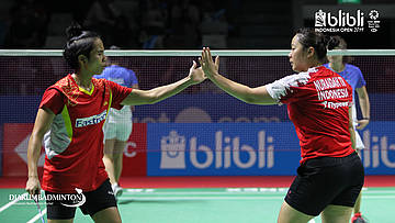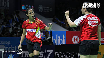 Nadya MELATI, Tiara Rosalia NURAIDAH (Indonesia) menyambut shuttlecock