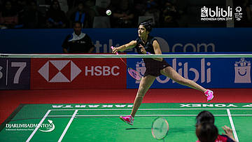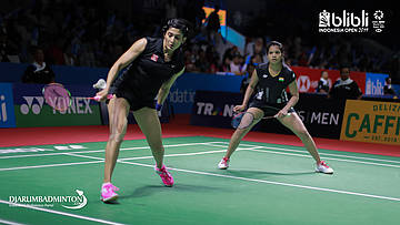 Ashwini PONNAPPA/REDDY N. Sikki (India) mengembalikan shuttlecock
